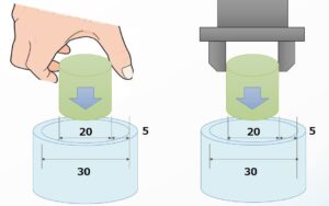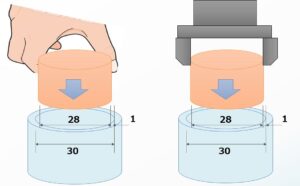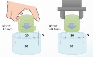 - 部品間のクリアランス(5㎜ vs 1㎜)・動作のばらつき(手 vs 設備)