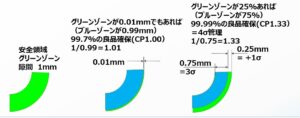 - どれだけ侵略されても、0.01mmでも安全領域があればCP1.00以上(99.7%)の良品は確保できる