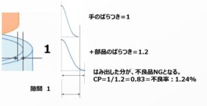 ”動作ばらつきと部品公差(良品領域)を加味して、不良発生率=Cp値を計算”