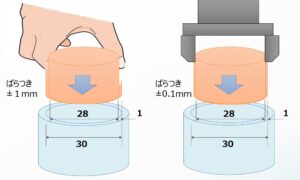 - 設備のばらつき=約±0.1mm 、と仮定すると